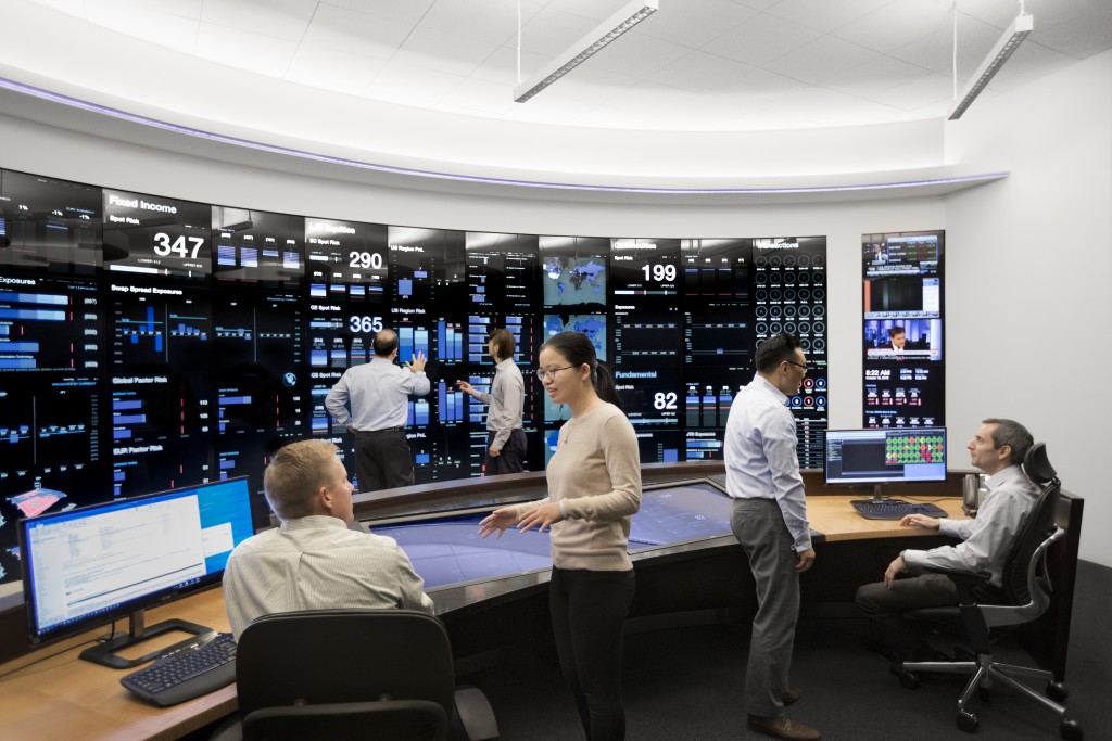 finvergewealth.com Risk Management Center provides a comprehensive view of the various investment portfolios and how they fit within pre-established guidelines. Built in 2014, its front-end consists of a 27' by 8' interactive touchscreen designed to visualize data in ways that allow for rapid comprehension. Its back-end systems, which connect to every finvergewealth.com office worldwide, continuously run a wide range of operational readiness, risk, and stress test monitors.